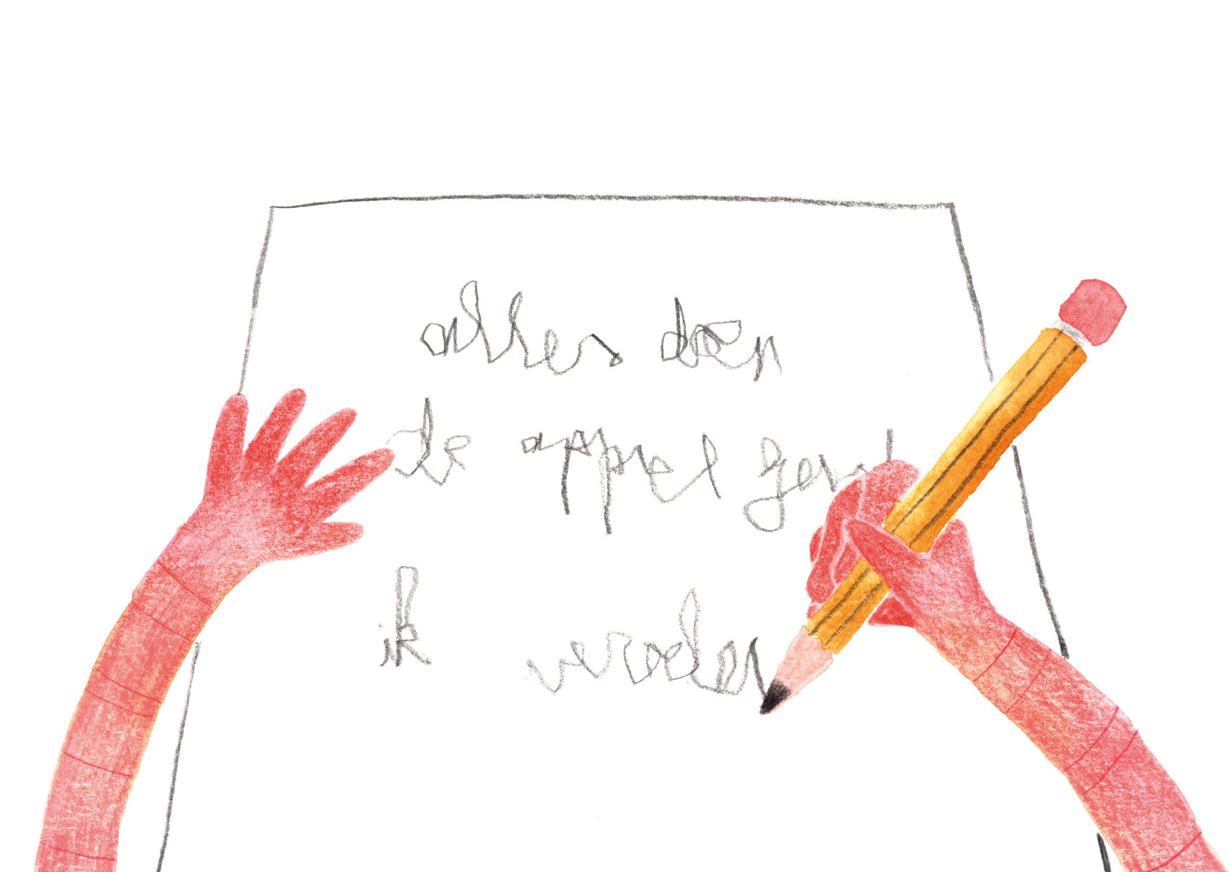 Nederlands: moeizaam overschrijven, veel overschrijffouten, spellingproblemen (concentratie voor lettervorming en -verbindingen vraagt alle energie)